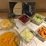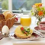Het ontbijt bij Pension Und Ferienwohnung Schutte Schmallenberg bestaat uit pannekoeken, verse vruchten en vers gebak.
